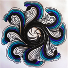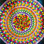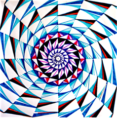 wth numbered and signed pix (8 cm x 8 cm) of 5 of the mandalas of my suite “36 stations de méditation” , here encased in a