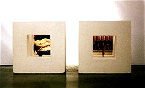 This piece won a Gold Glyph in the 12th PAIZ Art Biennial for its poetical result, but also for discovering an unheard of optical effect consisting of giving relief to flat pictures, thanks to a certain light arrangement through depth. (an effect invisible in photo though!)